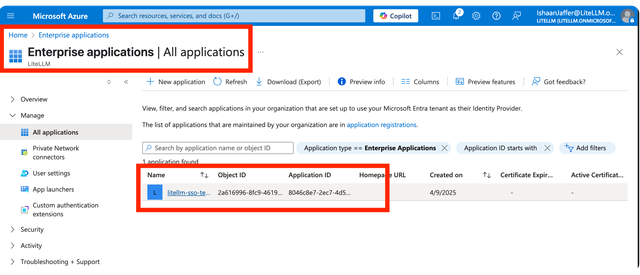On your IDP Portal, navigate to Enterprise Applications > Select your litellm app